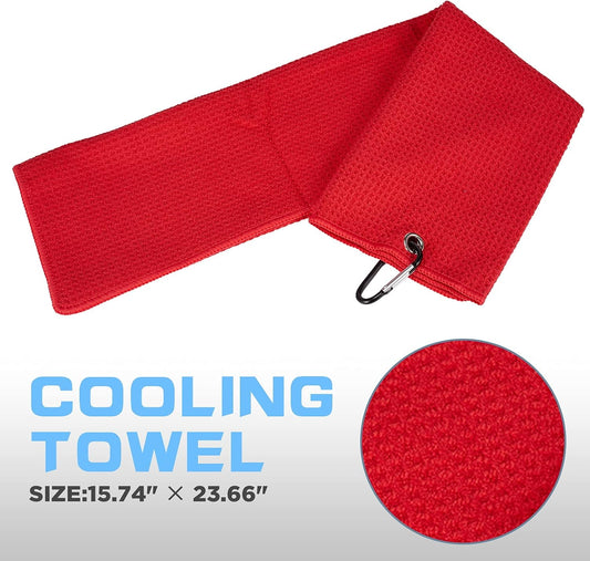 Golf Accessories for Men with Golf Towel Divot Repair Tool, Golf Club Brush & Golf Club Brush Groove Cleaning for Golf Gifts(Set a 4 Pieces in Drawstring Bag) (Red)